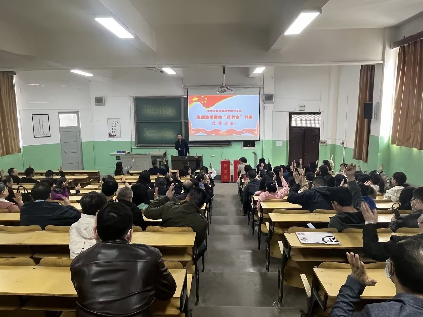 大会在庄严的《国际歌》中闭幕。会后,新一届分工会委员会召开了第一次委员会议,选举产生了分工会主席,明确了各委员的分工,并对下阶段工会工作进行了讨论。学院党委书记韩建华同志、副书记孟沛同志应邀参加本次会议,对新一届分工会委员会的工作进行建设性指导。