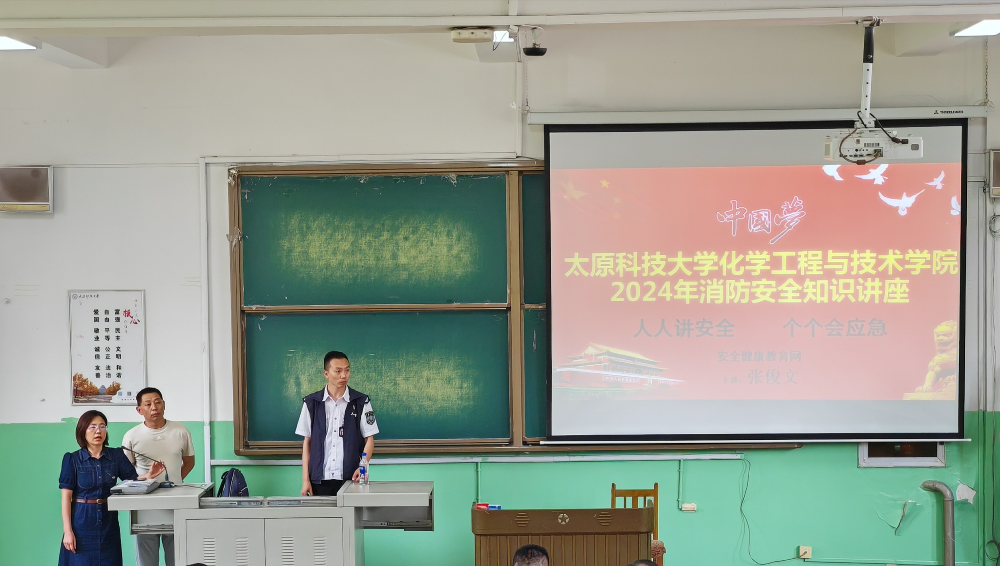 为认真贯彻落实习近平总书记关于安全生产的重要论述指示精神,按照《山西省人民政府关于做好2024 年安全生产工作的通知》(晋政发〔2024〕1号)要求,并深刻吸取近年来校园重大火灾事故教训,坚决防范遏制校园安全事故的发生,提升全体师生员工的安全意识和避险逃生能力,bat365中文官方网站联合校武装保卫部消防科于5月28日下午三点,在明志楼三阶教室开展了消防安全培训活动,聘请安全健康教育中心专职教员张俊文教官为我院参与实验室工作的全体教职工及全部硕士研究生进行理论知识培训和消防演练。