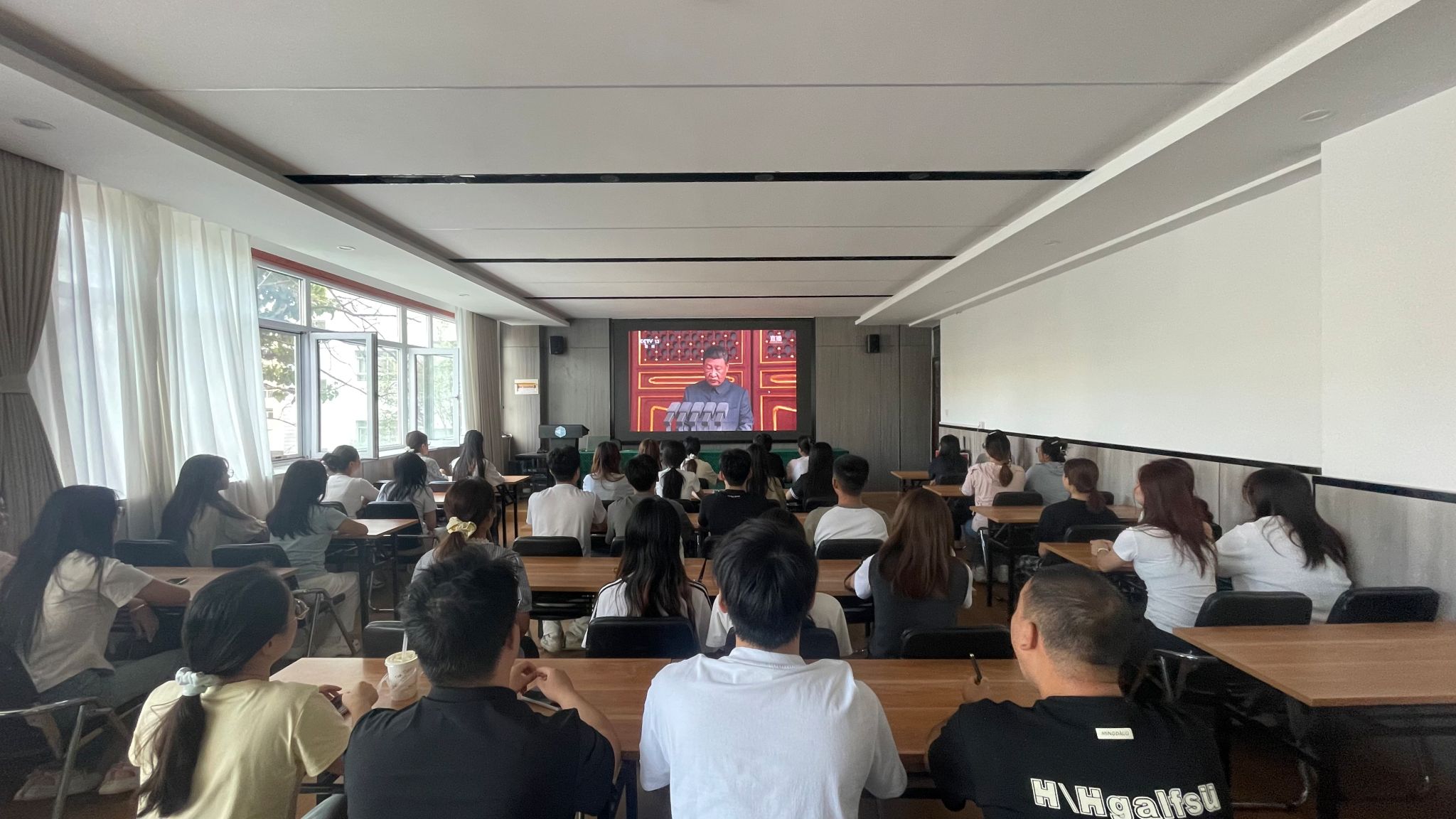 为铭记历史,缅怀先烈,弘扬伟大抗战精神,9月3日上午,我校bat365中文官方网站师生集中收看纪念中国人民抗日战争暨世界反法西斯战争胜利80周年大会实况直播。习近平总书记强调:“中华民族伟大复兴势不可挡!人类和平与发展的崇高事业必将胜利!”庄严盛大的阅兵场面令人心潮澎湃,官兵们威武雄壮的英姿和现代化武器装备的亮相,充分展现了国家强大的国防力量和捍卫和平的坚定决心。大家倍感自豪,深刻感受到在中国共产党领导下国家取得的辉煌成就和中华民族的伟大复兴。