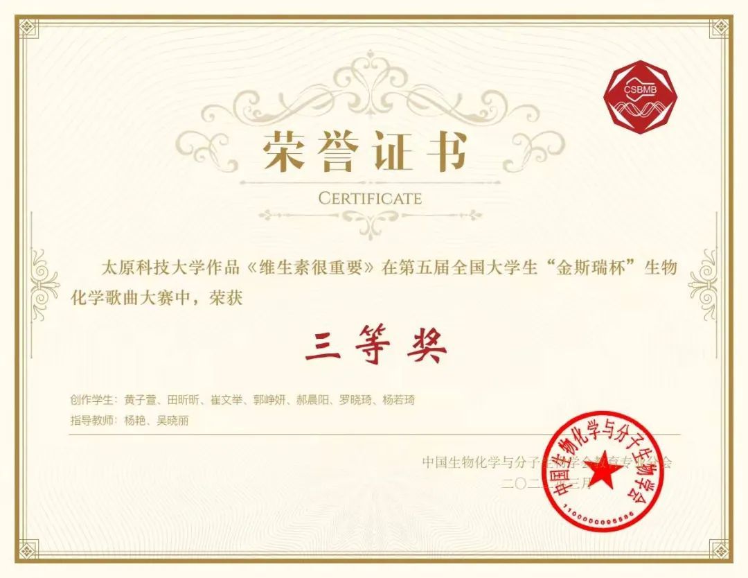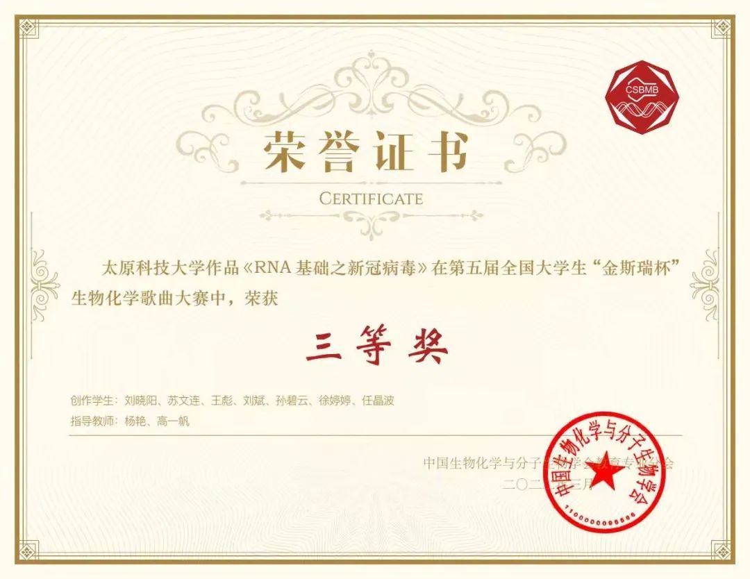 由中国生物化学与分子生物学学会教育专业分会主办,南京大学、江苏省生物化学与分子生物学学会承办的第五届全国大学生生物化学歌曲大赛于3月12日至13日在线上成功举办。我院参赛的《维生素很重要》和《RNA基础之新冠病毒》两首歌曲作品荣获三等奖。